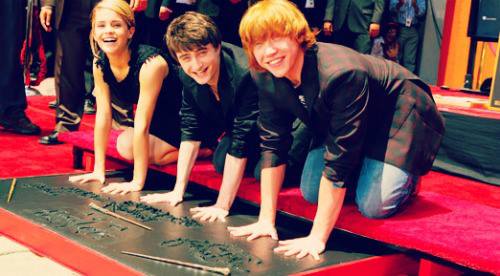 8. Emma Watson, Daniel Radcliffe e Rupert Grint possuem uma estrela na Calçada da Fama em Hollywood, além das tradicionais assinaturas e marcas de pés e mãos, eles deixaram também as marcas de suas varinhas.